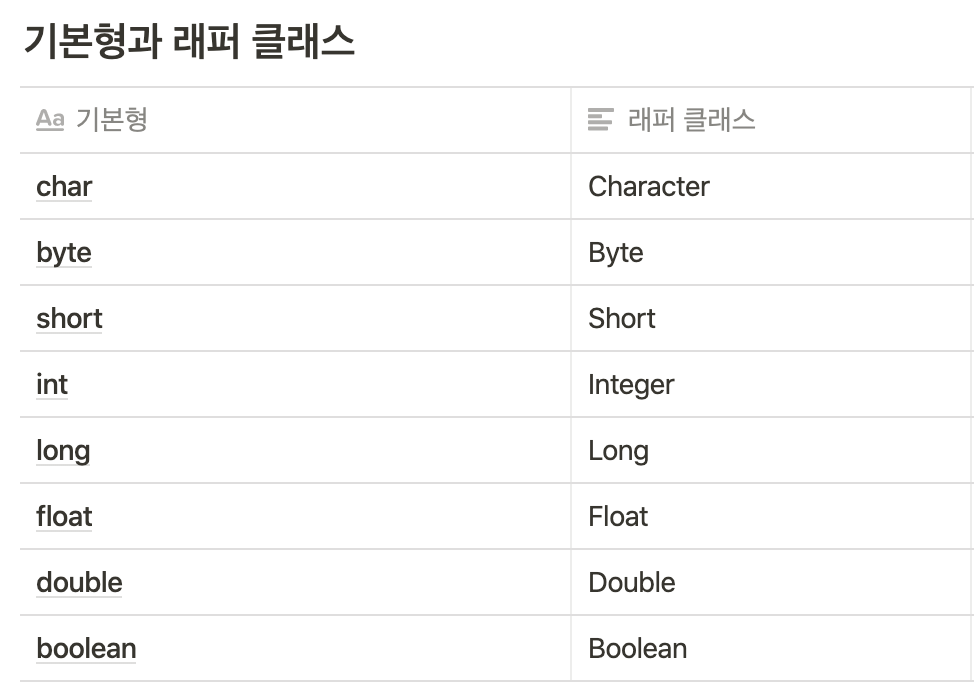 - 각종 처리를 메서드로 제공한다. 예를 들어 래퍼 클레스의 객체에서는 toString 메서드를 제공한다.