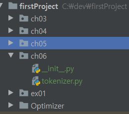 Pycharm에서 패키지 생성시 실수로ch05의 하위 폴더에ch06을 생성하였다.- 그래서 마우스로