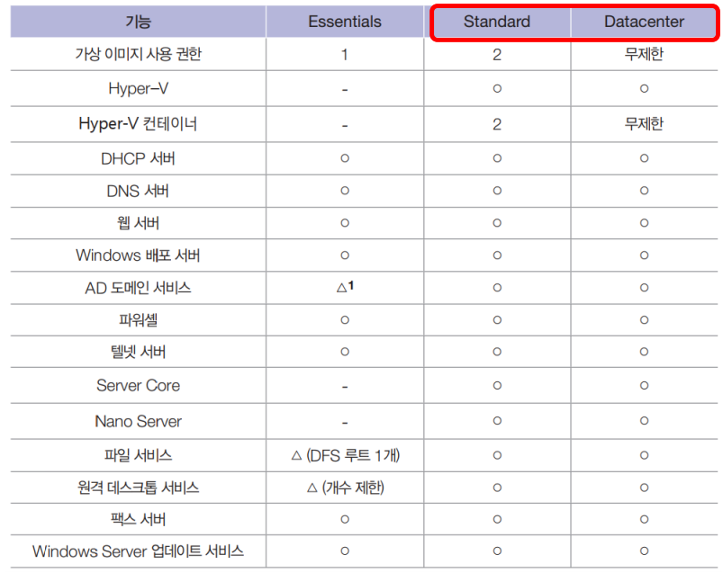 Datacenter, Standard, Essentials, Foundation 로 분류