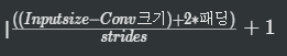 이다. 윗 식에서 padding이 없다.- MaxPool2D에서 (2,2)를 이용할 경우, pool_size=2, strides=2가 되므로, 2를 빼주고 2를 나누고 1을 더한 값이 된다.