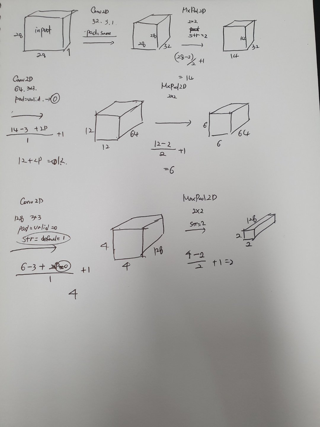 pad=valid이면pad=0이다. - Conv2D의 output_shape는